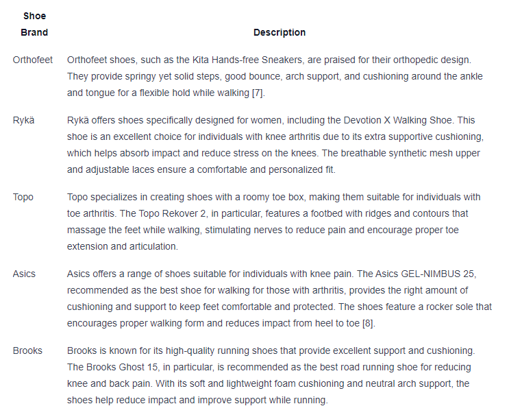 In addition to top brands, specific shoe models have been identified as beneficial for addressing various knee conditions. These shoes are designed to provide targeted support and comfort based on the specific needs of individuals experiencing knee pain.
