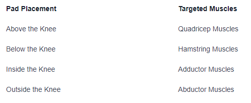 The pads should also be placed on the inside and outside of the knee for comprehensive pain relief when utilizing TENS therapy for knee pain. These placements will help target the adductors and abductors muscles in the thigh to manage the knee pain effectively.